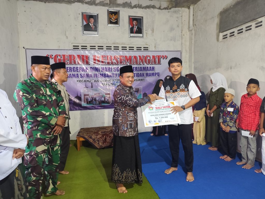Gerih, 10 Oktober 2025 – Pemerintah Kecamatan Gerih melaksanakan kegiatan “Gerih Bersemangat” di Panti Asuhan Al Munawaroh, Dusun Bulak, Desa Gerih.Kegiatan yang merupakan bagian dari program “Berkat Warung” dan “Subuh Bergerak” ini diisi dengan salat subuh berjamaah dan aksi sosial membantu warga kurang mampu.Camat Gerih Sriyono, S.Sos., MM. menyampaikan bahwa kegiatan ini menjadi sarana memperkuat kebersamaan, kepedulian, dan semangat gotong royong antarinstansi serta masyarakat Kecamatan Gerih.